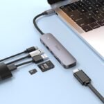 Adapteris Hoco HB28 Type-C Multi-Function Converter HDMI+USB3.0+USB2.0+SD+TF+PD pilkas