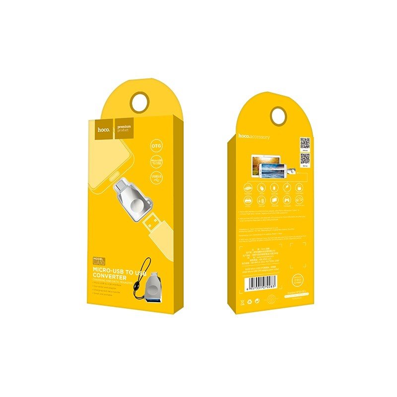 Adapteris Hoco UA10 MicroUSB to USB-A pilkas