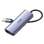 Adapteris Ugreen CM252 USB-C to 3xUSB-A + RJ45 (MicroUSB Power Supply) pilkas