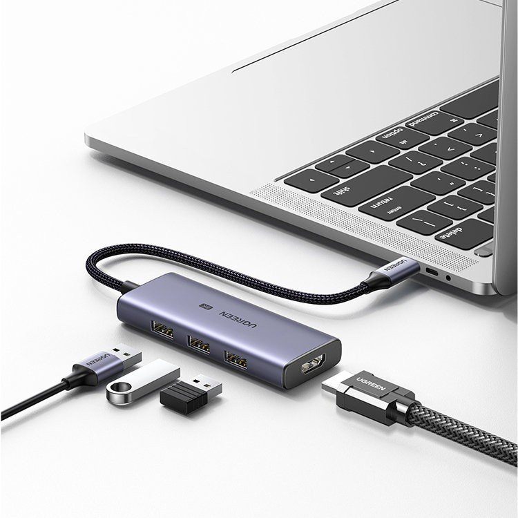 Adapteris Ugreen CM500 USB-C to 3xUSB-A + HDMI 2.1 pilkas